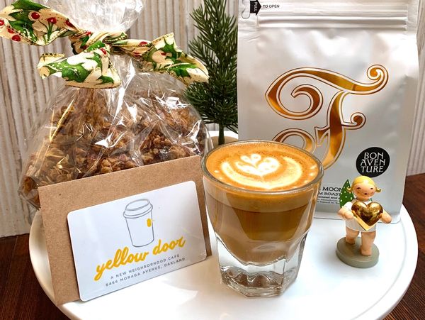 Need a gift? Swing by to pick up a bag of Saint Frank Coffee and a Yellow Door gift card.